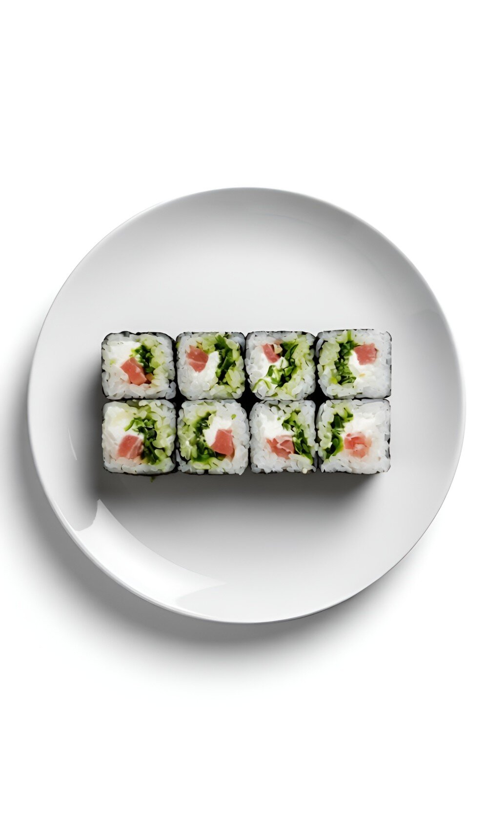Рис, нори, сыр творожный, тунец, чука салат